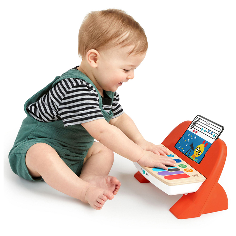 Музыкальная игрушка для малышей "Пианино" знакомит малышей с классическими мелодиями на этой деревянной клавиатуре с технологией Magic Touch™. С тремя музыкальными карточками с цветовой кодировкой малыши могут воспроизводить популярные мелодии в музыкальном звучании по своему выбору, следуя точкам на карточках. Нажатие синей кнопки активирует установленные мелодии, или дети могут свободно играть с различными звуками клавиш пианино, чтобы обнаружить причину и следствие, создавая свои собственные специальные мелодии.