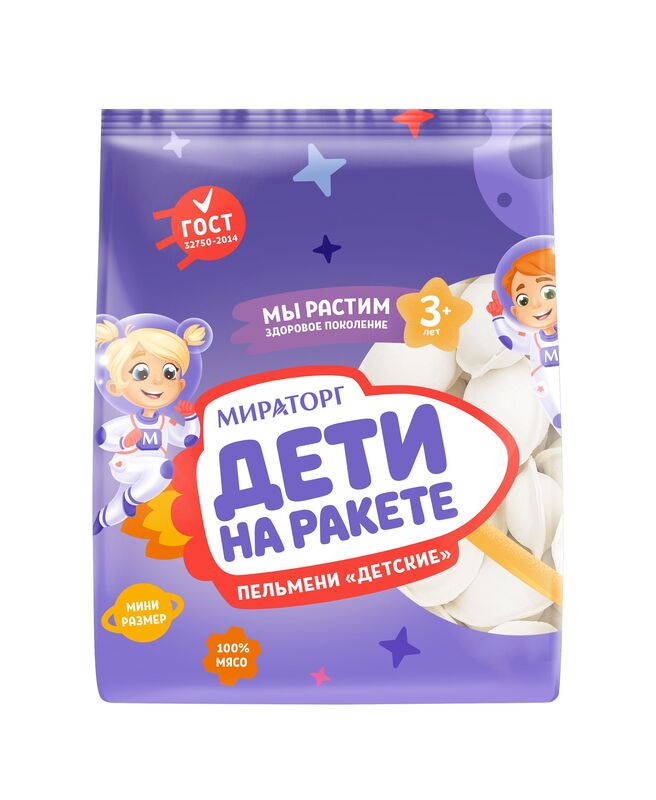Для маленьких гурманов Мираторг приготовил мешочек космических ГОСТинцев с планеты Аппетит. Нежнейший фарш с молоком из отборного фермерского мяса, немного натуральных пряностей и тонкое тесто из муки высшего сорта – мы производим детские пельмени только из лучших ингредиентов. Скорее попробуйте мини-пельмешки, созданные с учётом всех стандартов производства детских продуктов. Приготовьте ложечки, сейчас будет вкусно!