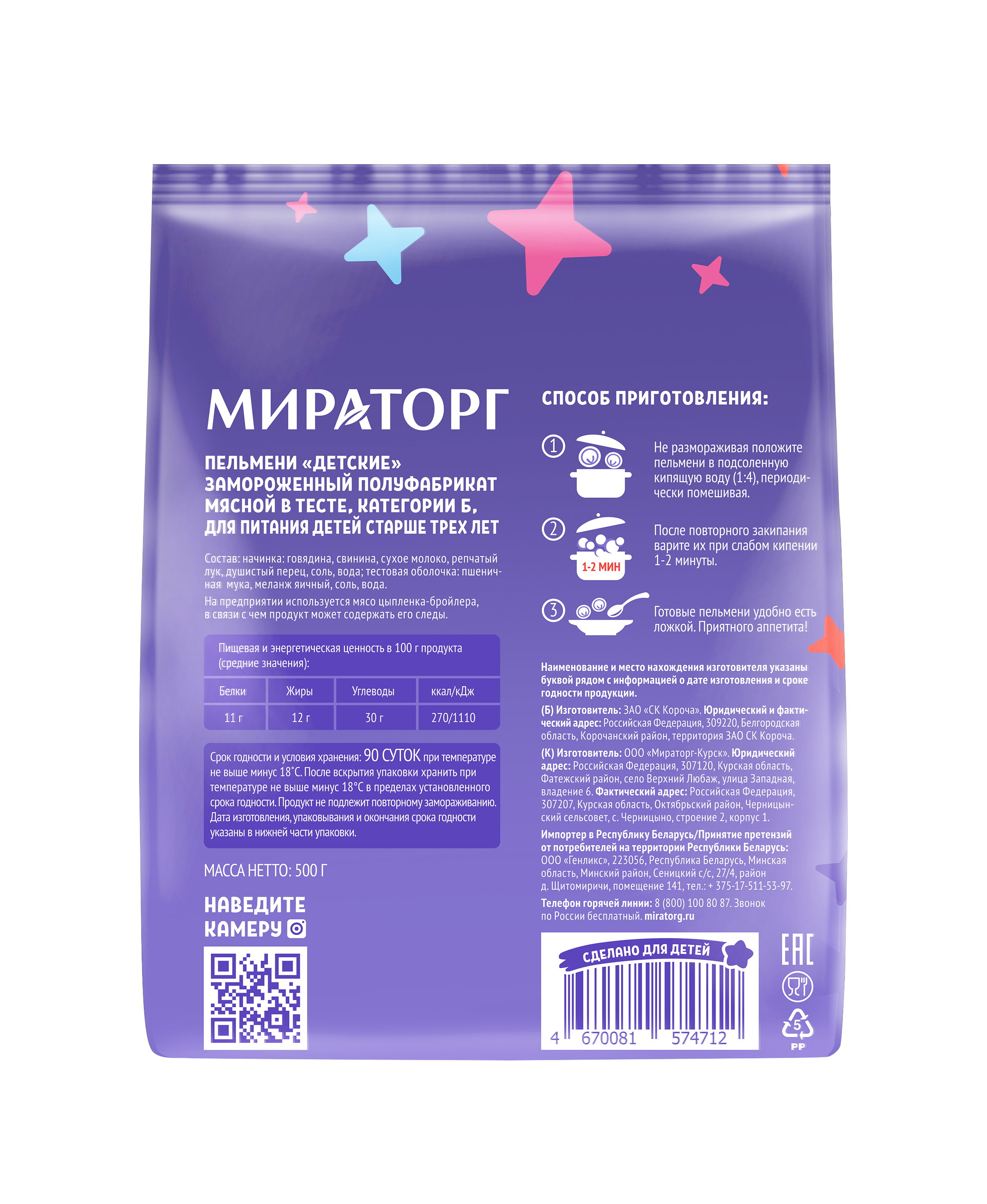 А маркировка 3+ на упаковке подтверждает, что Мираторг производит продукты, сертифицированные по стандартам детского питания, ведь Вселенная Мираторг – это Вселенная качественного и вкусного мяса.