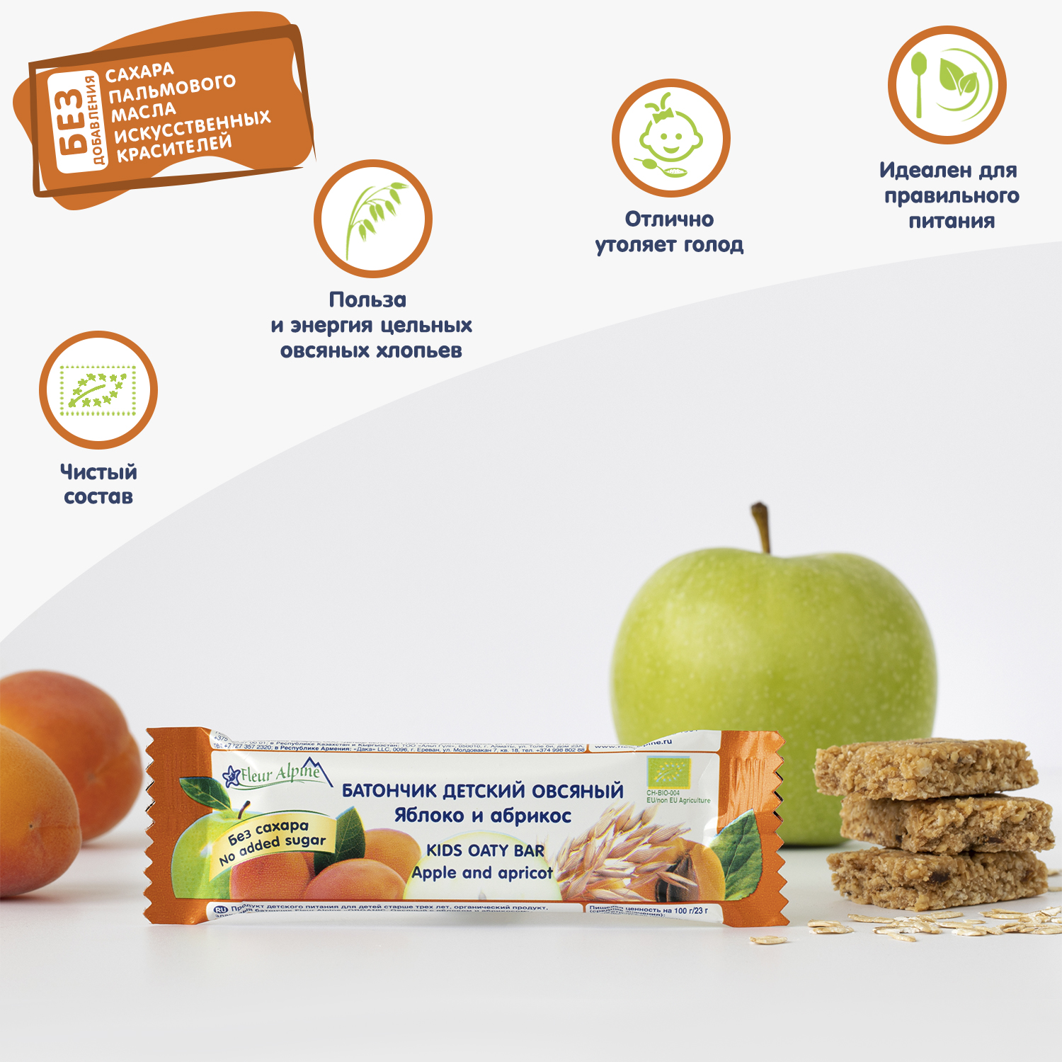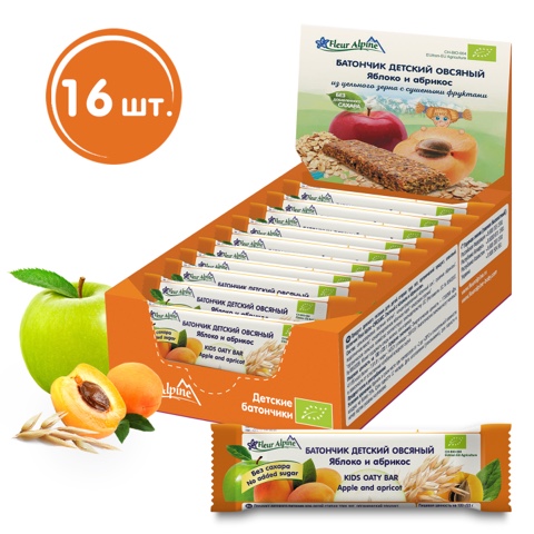 Батончик детский ОВСЯНЫЙ Fleur Alpine ЯБЛОКО и АБРИКОС понравится детям и их родителям: