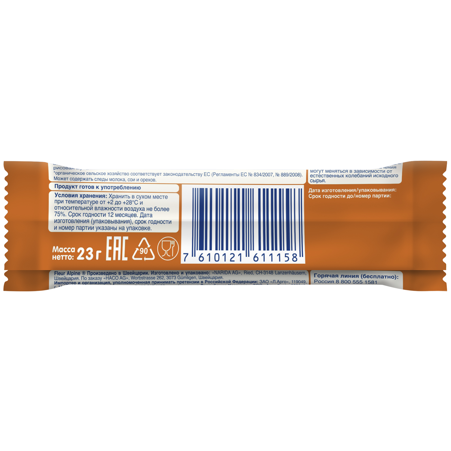 • Органический продукт, произведен в Швейцарии и сертифицирован в соответствии с Регламентами ЕС № 834/2007 и № 889/2008