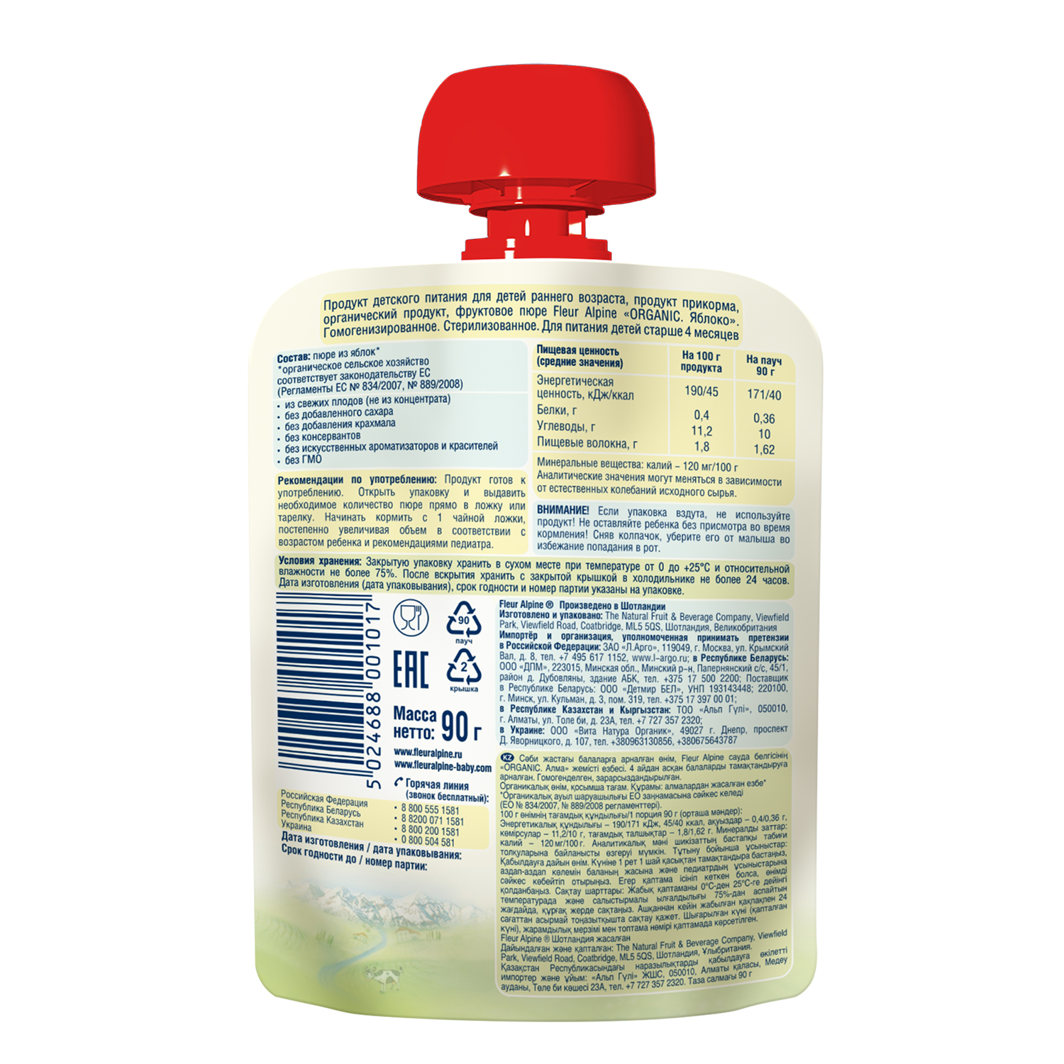 Пюре Fleur Alpine ЯБЛОКО отлично подходит для первого фруктового прикорма. Пюре имеет нежную консистенцию, аромат и вкус свежего яблока. Упаковку-пауч удобно брать с собой на прогулку или в поездку.