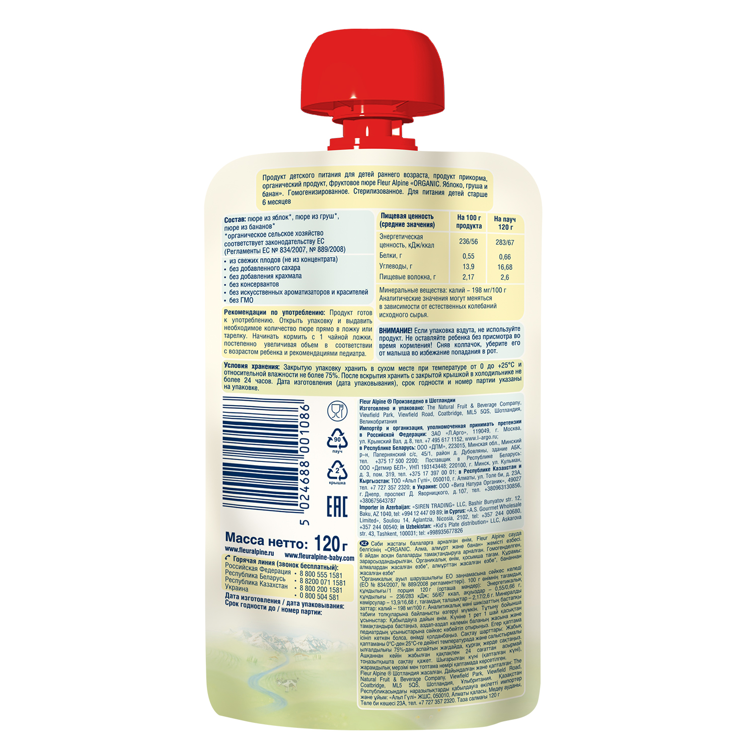 Пюре яблоко груша банан Органик от 6 месяцев 120г Fleur Alpine