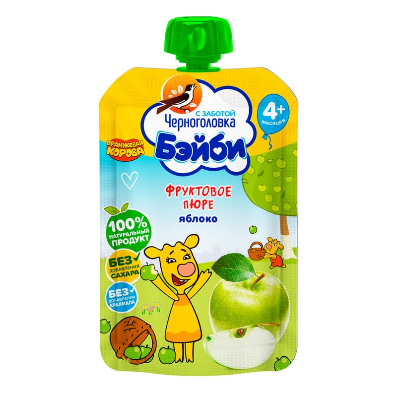 Черноголовка Бэйби Пюре Яблоко с 4 месяцев, 85гр. В мягкой упаковке пауч